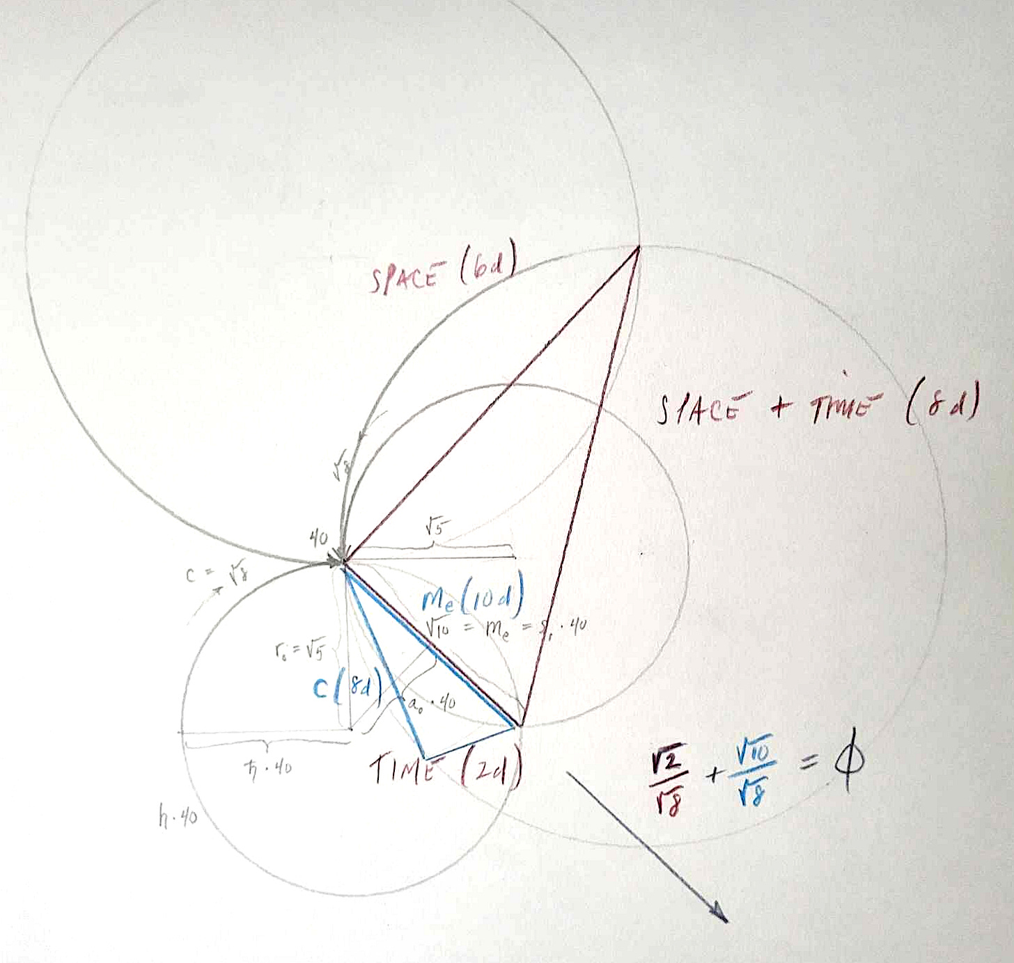 mₑ : c — √10 / √8 — the length of the diamond side relative to the speed of light circling over it