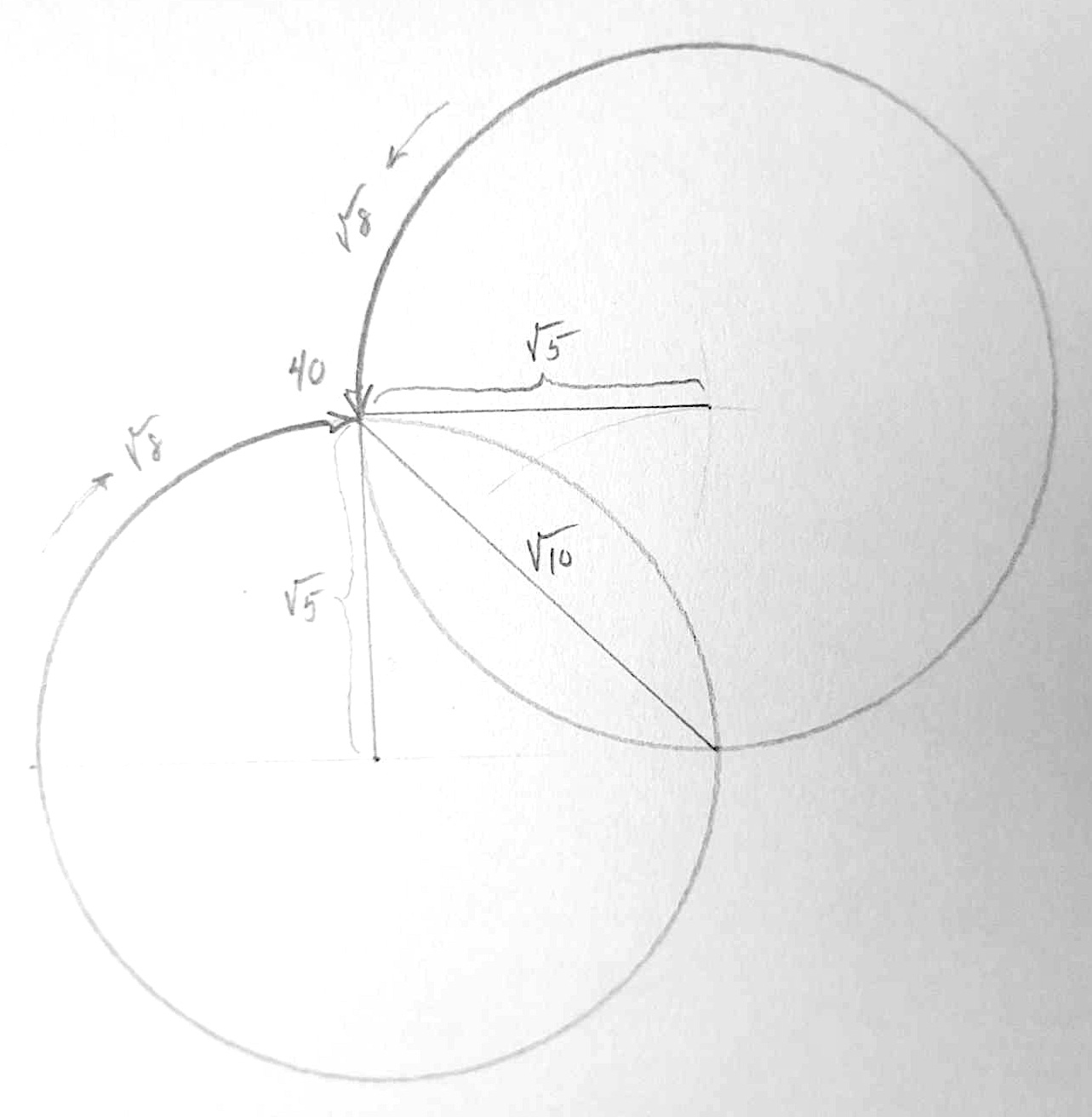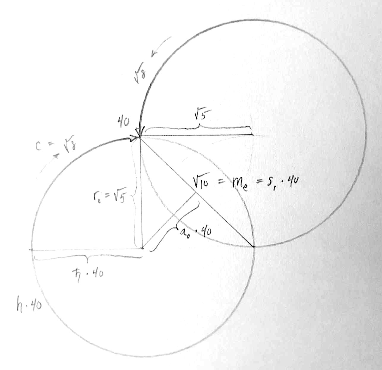 2 : 8 — √2 / √8 — the ratio of the overlaid spinning circumferences